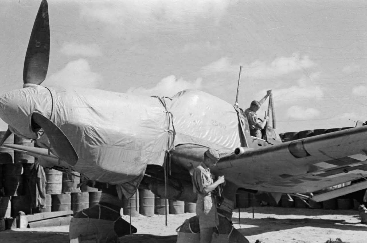 En Egypte, une mission aérienne du 7e Staffel du Sturzkampfgeschwader 3 (7./StG3) et maintenance des armes de bord par les mécaniciens.