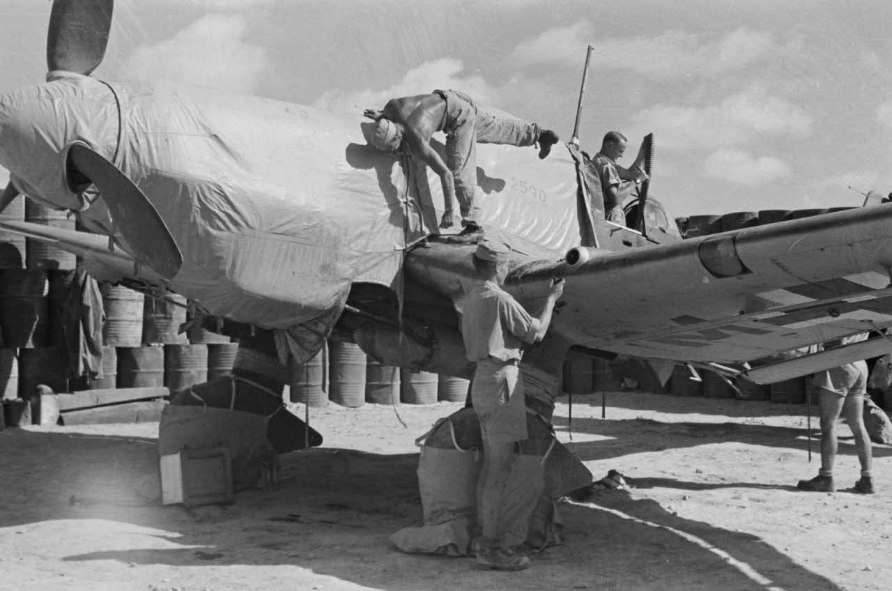 En Egypte, une mission aérienne du 7e Staffel du Sturzkampfgeschwader 3 (7./StG3) et maintenance des armes de bord par les mécaniciens.