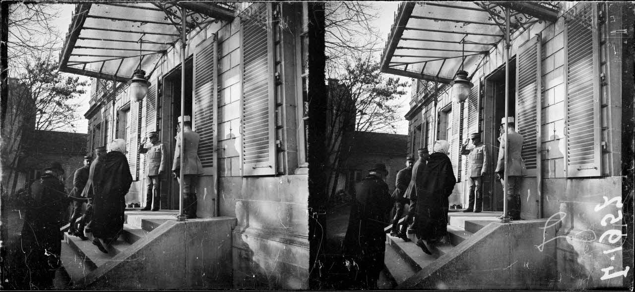 Arcis sur Aube. Arrivée de la Mission Musulmane au quartier général. [légende d'origine]