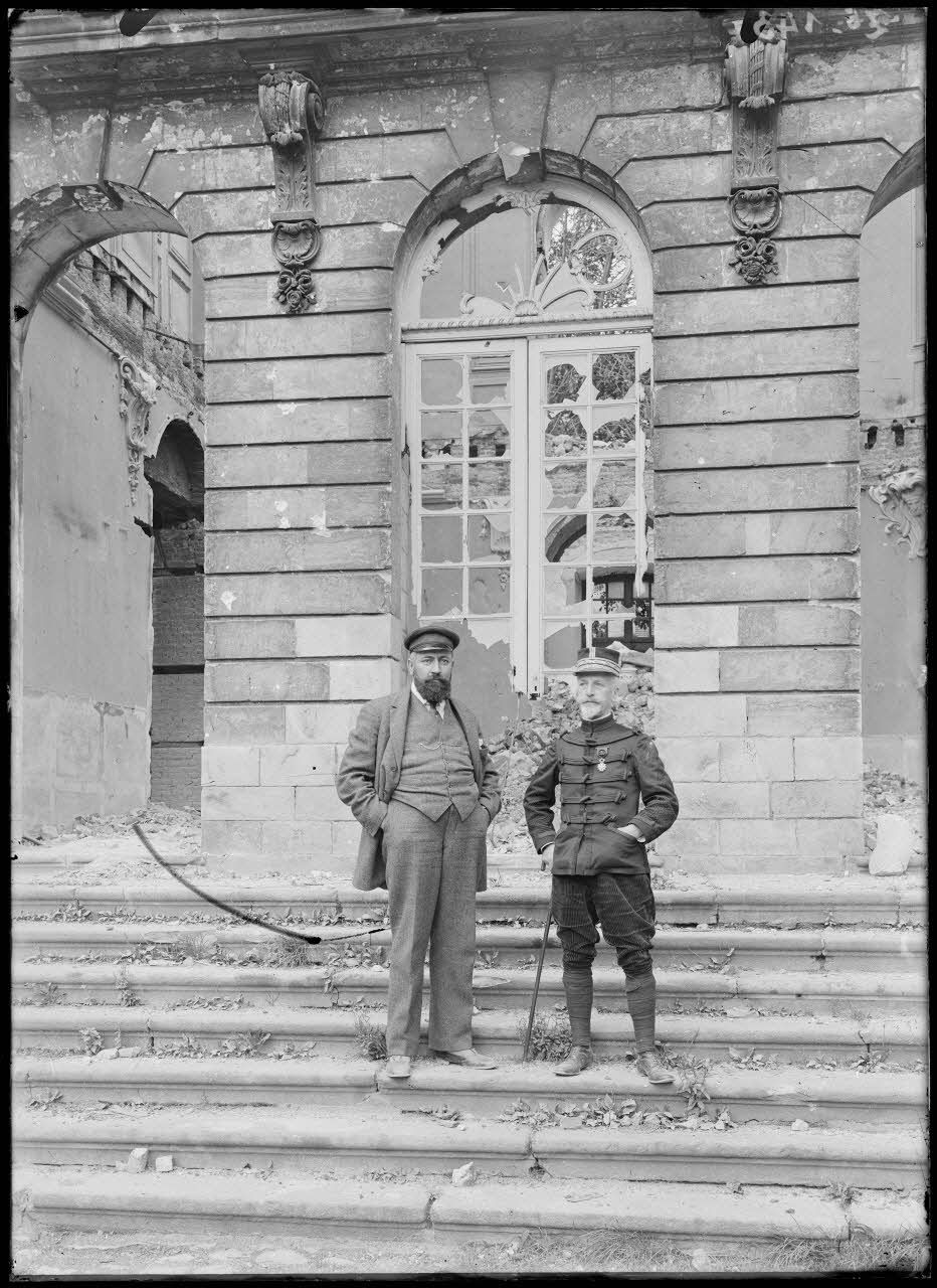 A Arras (Pas-de-Calais, Z143 à Z145) le musée d'Arras a été touché par les combats, le sous-secrétaire d'Etat aux Beaux-Arts, M. Dalimier, visite la ville et constate les dégâts.