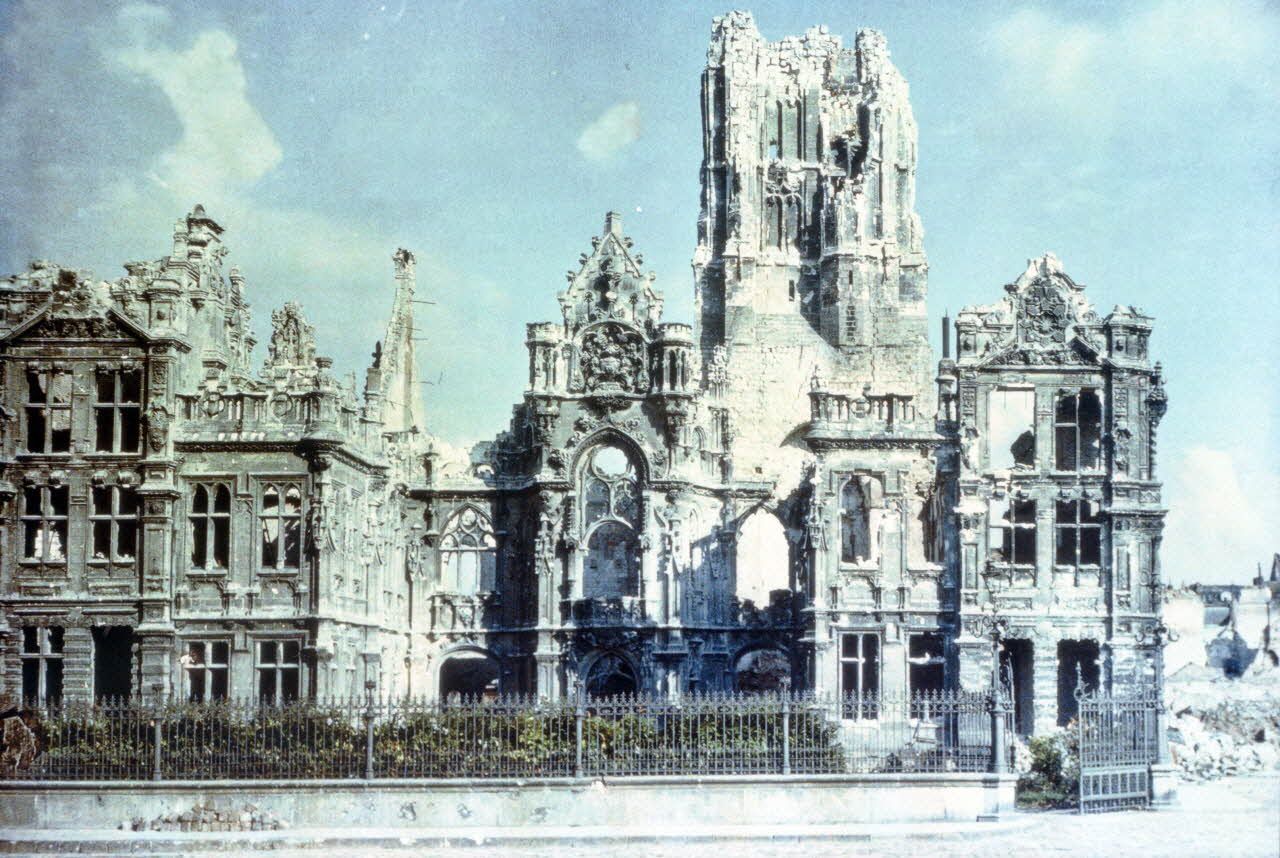 - les ruines et destructions occasionnées par la guerre à Verdun, Reims, Arras ou ailleurs : maisons, églises, cathédrales, lieux symboliques des grandes villes de province en ruines ;