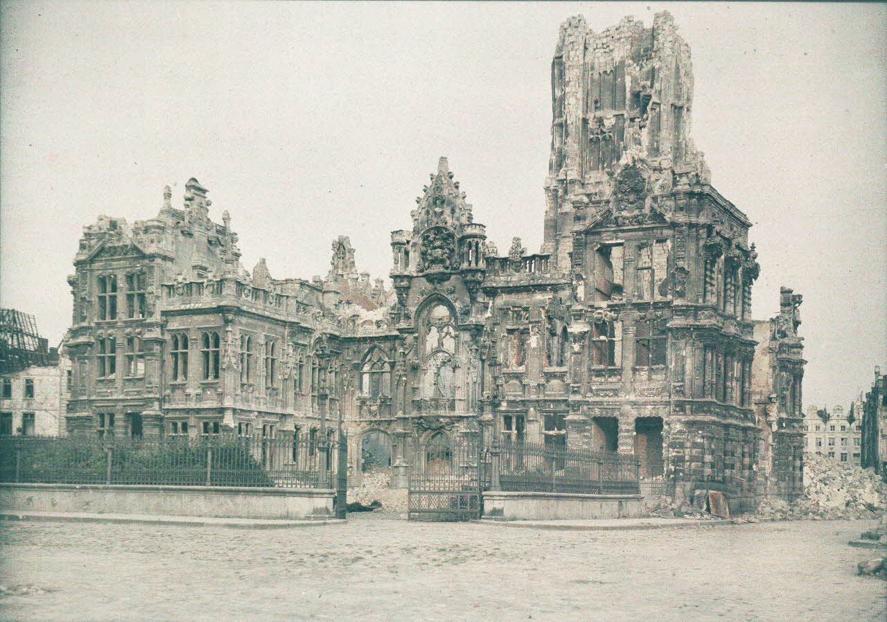 - les ruines et destructions occasionnées par la guerre à Verdun, Reims, Arras ou ailleurs : maisons, églises, cathédrales, lieux symboliques des grandes villes de province en ruines ;