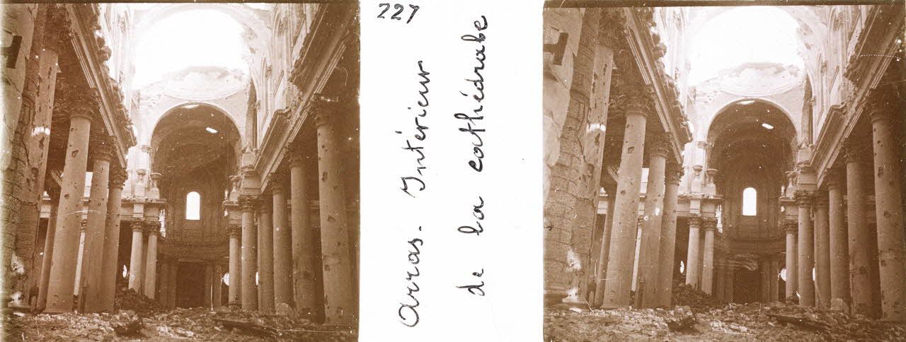 Ce reportage rassemble des photographies de la ville détruite d'Arras : la porte Beaudimont, la cathédrale, l'hôtel de ville, la citadelle, et divers quartiers.