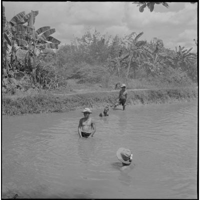 Arrestation de partisans du Vietminh dans une rizière par des éléments du 43e régiment d'infanterie coloniale au cours de l'opération Tourbillon 2 en plaine des Joncs.