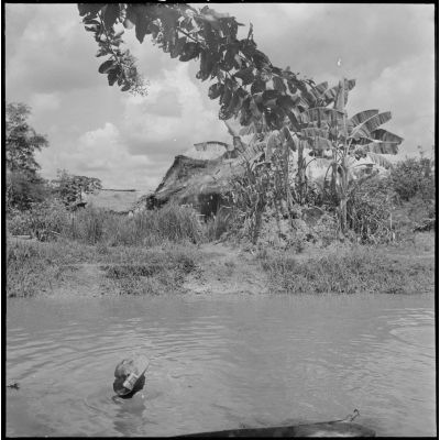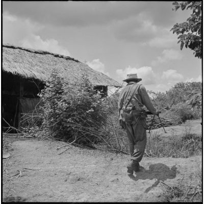 Fouille de paillottes par des fantassins du 43e régiment d’infanterie colonial (43e RIC) au cours de l’opération Tourbillon 2.