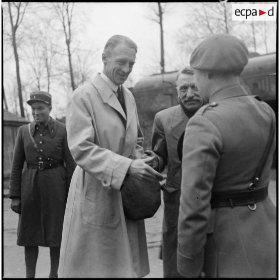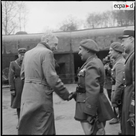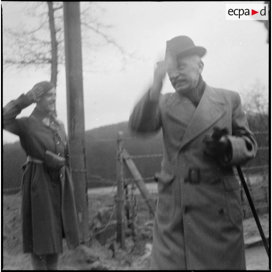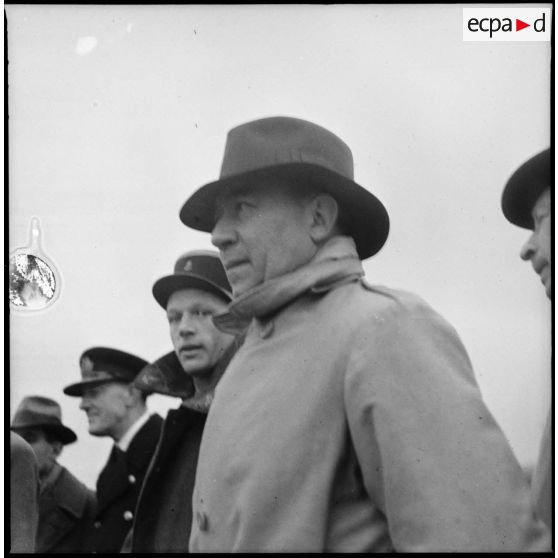 Portrait d'une personnalité en visite au Mont des Welches, ouvrage fortifié de la ligne Maginot.