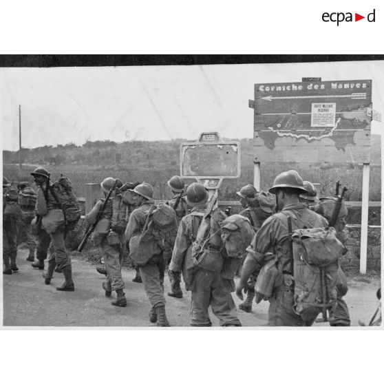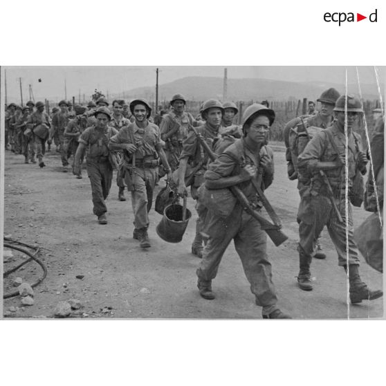 Colonne de tirailleurs du 3e RTA après le débarquement.