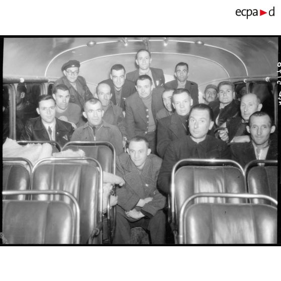 Ici, un groupe de rapatriés arrive à l'aérodrome de Toussus-le-Noble où ils sont accueillis, recensés, interrogés et pris en charge.