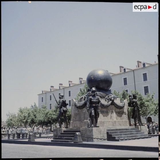 Cérémonie militaire à Sidi-bel-Abbès devant le monument de la légion.