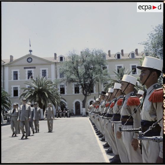 Le général de Gaulle passe en revue les hommes de la Légion lors de sa venue à Sidi-bel-Abbès.