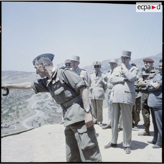 Le général de Gaulle salue les militaires lors de sa visite en Oranie.