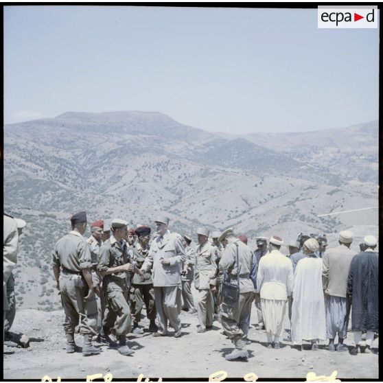 La population attend la visite du général de Gaulle dans les montagnes de l’Oranie.