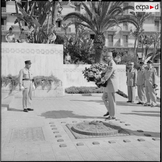 Le général Demetz dépose une gerbe au pied du monument aux morts d'Alger.