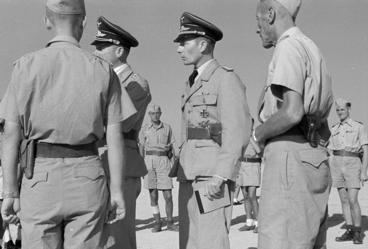 Note : Consulter les légendes du reportages conservées au Bundesarchiv de Freiburg RL 15-83C-245 (Luftwaffe KbK.7 film 1771). Consulter le reportage DAA 2500 pour retrouver la même revue du général Hoffmann von Waldau. Le reportage DAA 2500 est daté d'août 1942 mais situé par un lecteur en Cyrénaique.