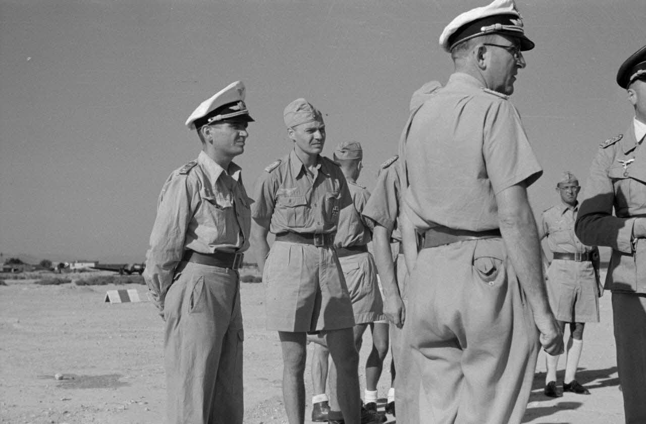 Note : Consulter les légendes du reportages conservées au Bundesarchiv de Freiburg RL 15-83C-245 (Luftwaffe KbK.7 film 1771). Consulter le reportage DAA 2500 pour retrouver la même revue du général Hoffmann von Waldau. Le reportage DAA 2500 est daté d'août 1942 mais situé par un lecteur en Cyrénaique.