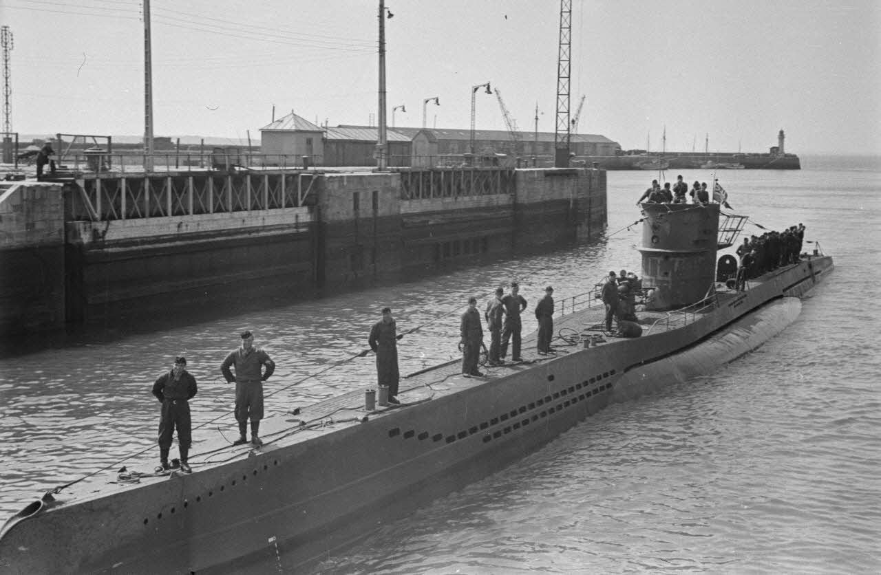 Arrivée du sous-marin U-203 dans le port de Saint-Nazaire.