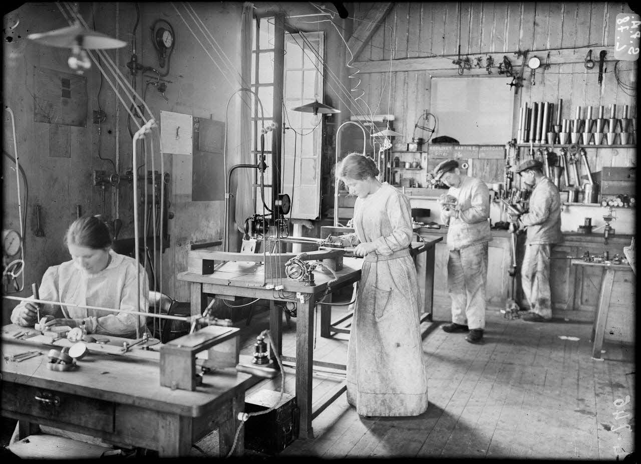 Arsenal de Cherbourg. Atelier de réglage de torpilles automobiles par l'appareil Obry et le gyroscope à air. [légende d'origine]