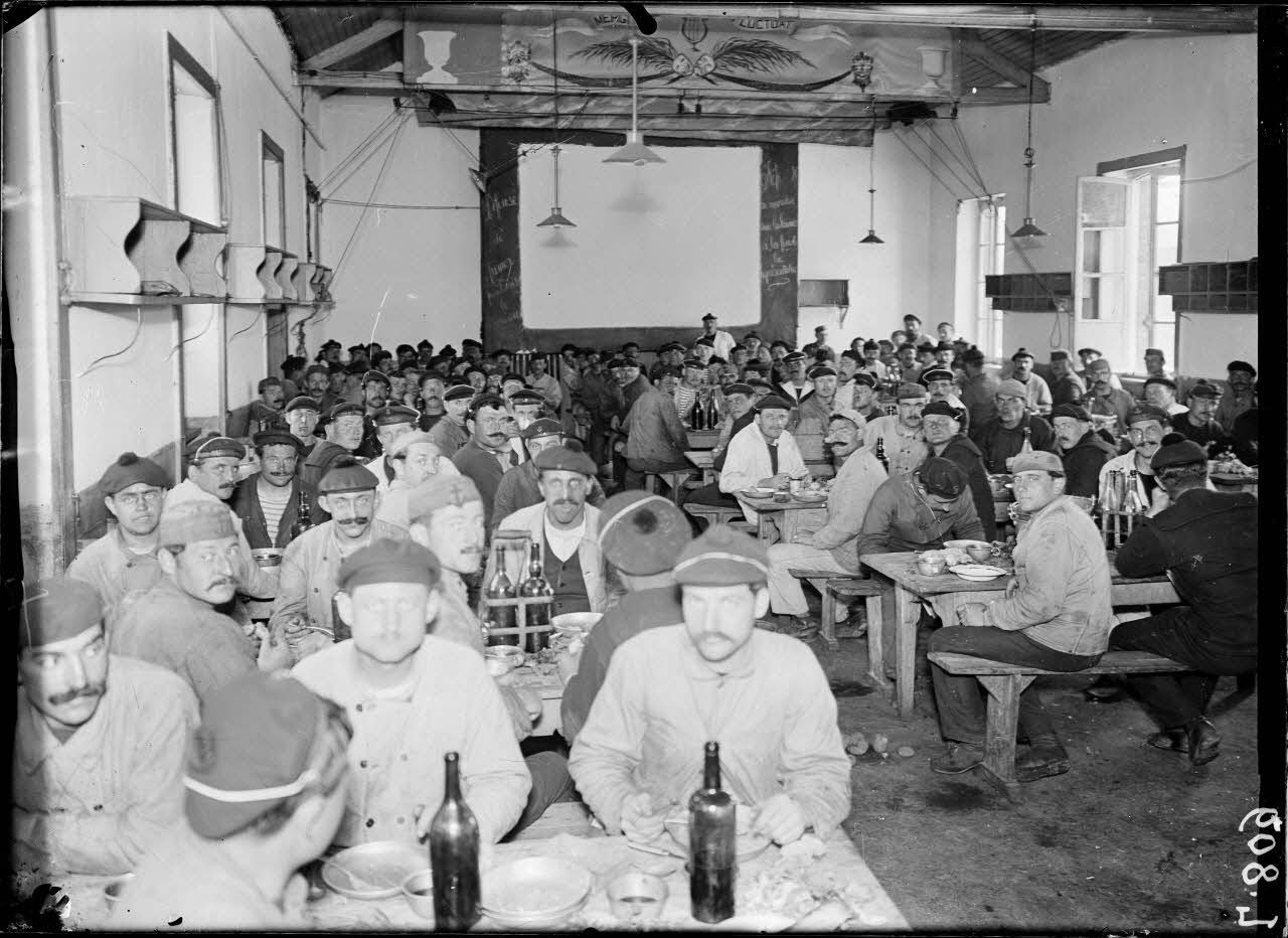 Arsenal de Cherbourg. Réfectoire des équipages de terre des sous-marins. [légende d'origine]