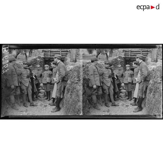 Région de Vidor. Le colonel Pietro Gelijeses et officiers dans une tranchée au bord de la Piave.