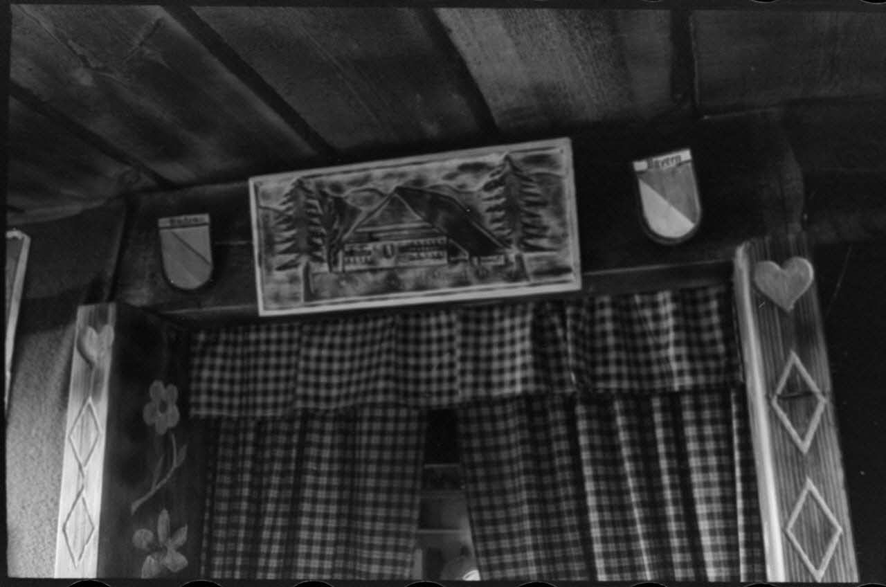 Sur le fronton des portes intérieures ornées de fleurs et de motifs montagneux, on note accrochés sur les murs, le blason de la Bavière, les armoiries de Baden ainsi qu'une maison typique de la Forêt-Noire.