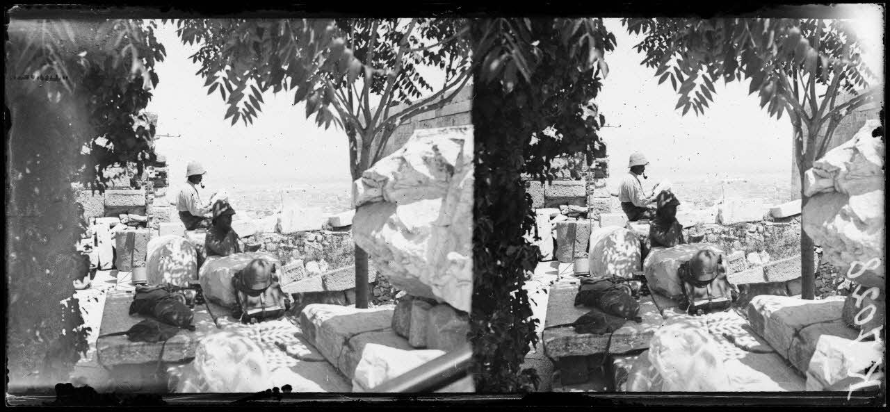 Athènes. Près de la prison de Socrate, soldats français au travail.