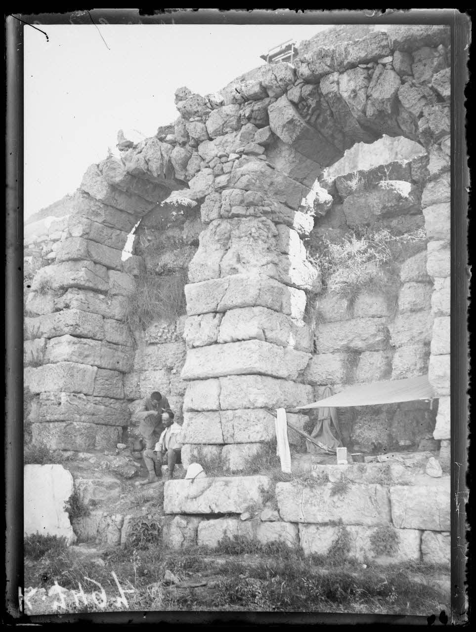 Athènes. Odéon d'Hérode Attiens. Le coiffeur militaire dans les ruines. [légende d'origine]