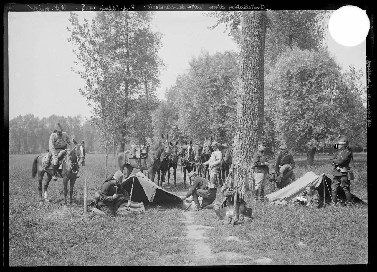 Attaque de Souchez, installation d'un poste de cavalerie, Pas-de-Calais, 1915, Etat-major. [légende d'origine]