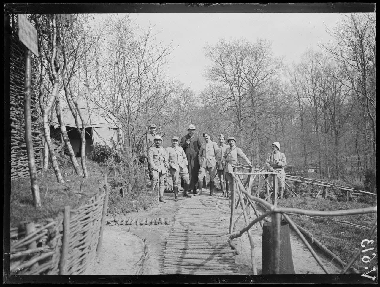 L'aumonier de la 36e DI (division d'infanterie) fait la tournée des positions françaises situées dans le secteur de Craonnelle dans l'Aisne. Au Blanc-Sablon, il rencontre des officiers.