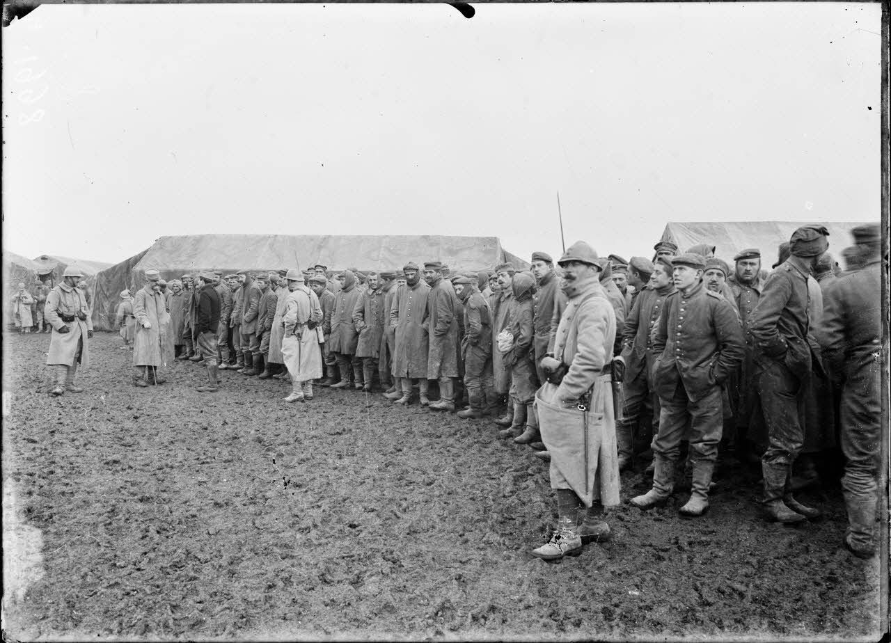 Au camp de Souilly dans la Meuse, rassemblement de prisonniers allemands