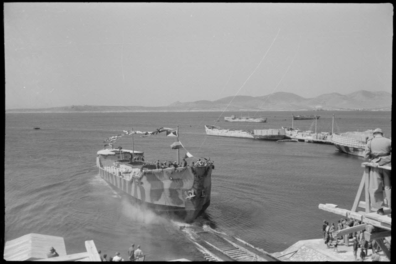 Dans le golfe d’Elefsina, l’équipage d’un hydravion Arado Ar-196 du Seeaufklärungsgruppe 126 basé à Skaramangas, assiste à un exercice de camouflage de la baie par la Kriegsmarine.