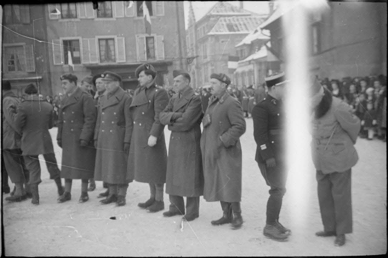 Le 14 janvier 1945, une délégation d'attachés militaires étrangers, en visite sur le front d'Alsace, participe à une cérémonie militaire à Masevaux en présence du général de division Marcel Carpentier, commandant la 2e DIM.