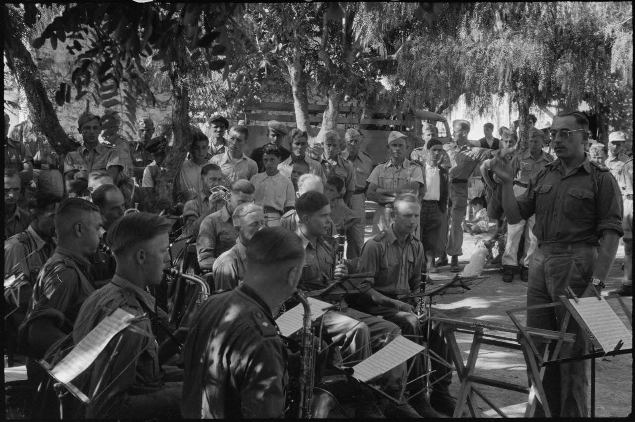 A Kastelli en Crète, une exposition d'objets au foyer du soldat (Soldatenheim), un concert de la musique militaire de la Luftwaffe est donné devant le foyer.