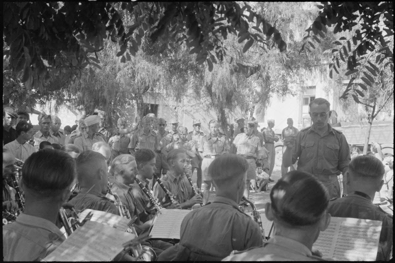A Kastelli en Crète, une exposition d'objets au foyer du soldat (Soldatenheim), un concert de la musique militaire de la Luftwaffe est donné devant le foyer.
