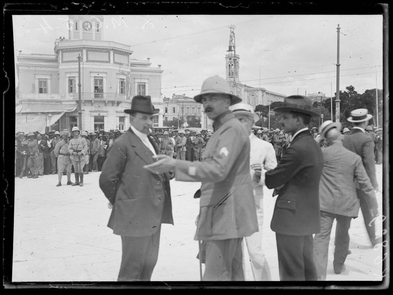Au Pirée. Quai de l'Horloge. Départ des principaux germanophiles (le capitaine d'Etat major Lerrot - 2e bureau - et le général Dousmanis). [légende d'origine]