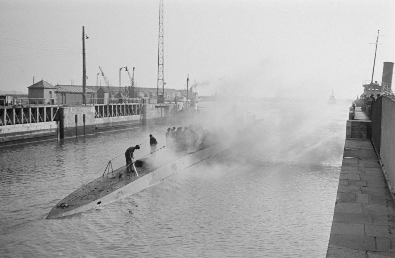 Retour au port de Saint-Nazaire du sous-marin U-553 commandé par le Kapitänleutnant Karl Thurmann.