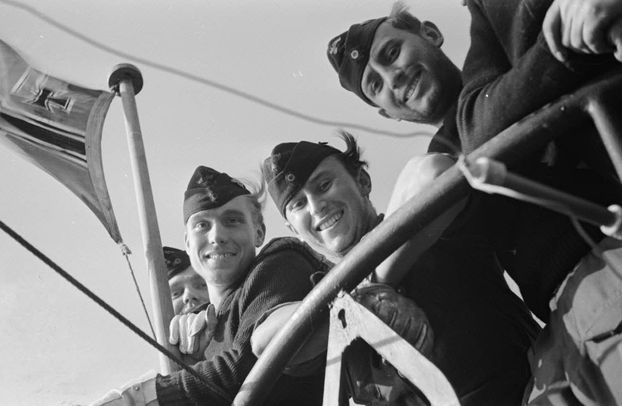 Retour au port du sous-marin du Kapitänleutnant Thurmann (U-553) et portraits du Kapitänleutnant Erich Topp (U-552).