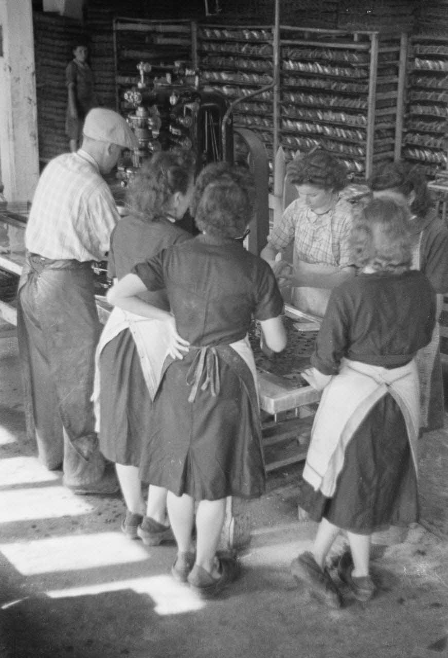 Ouvrières au sein de la fabrique de sardines de Douarnenez.