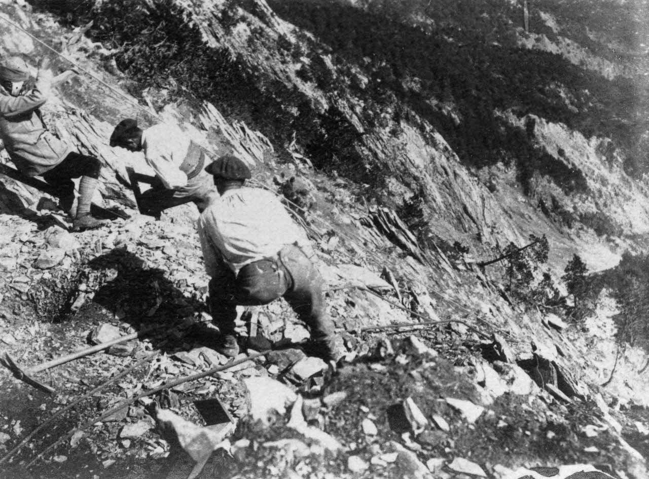 Au travail de mine au dessus de l'a pic de Prégentil. [légende d'origine]