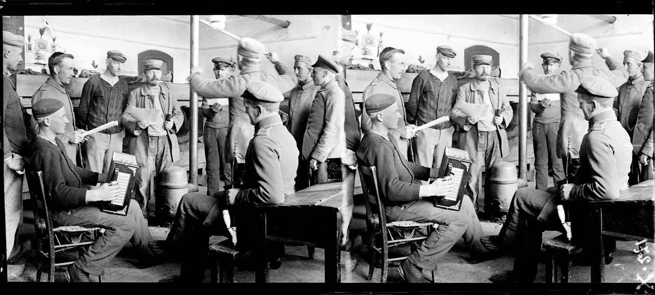 Aurillac. Ecole Albert. Prisonniers du Schleswig faisant de la musique.