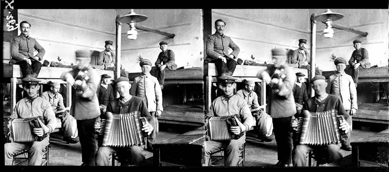 Aurillac. Ecole Albert. Prisonniers du Schleswig faisant de la musique. [légende d'origine]