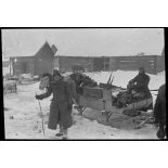 Medyn - Woronov [soldats devant un traîneau dans la neige]. [Description en cours]