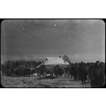 Medyn - Woronov. [Un groupe d'hommes devant un abri en bois].<br> [Description en cours]