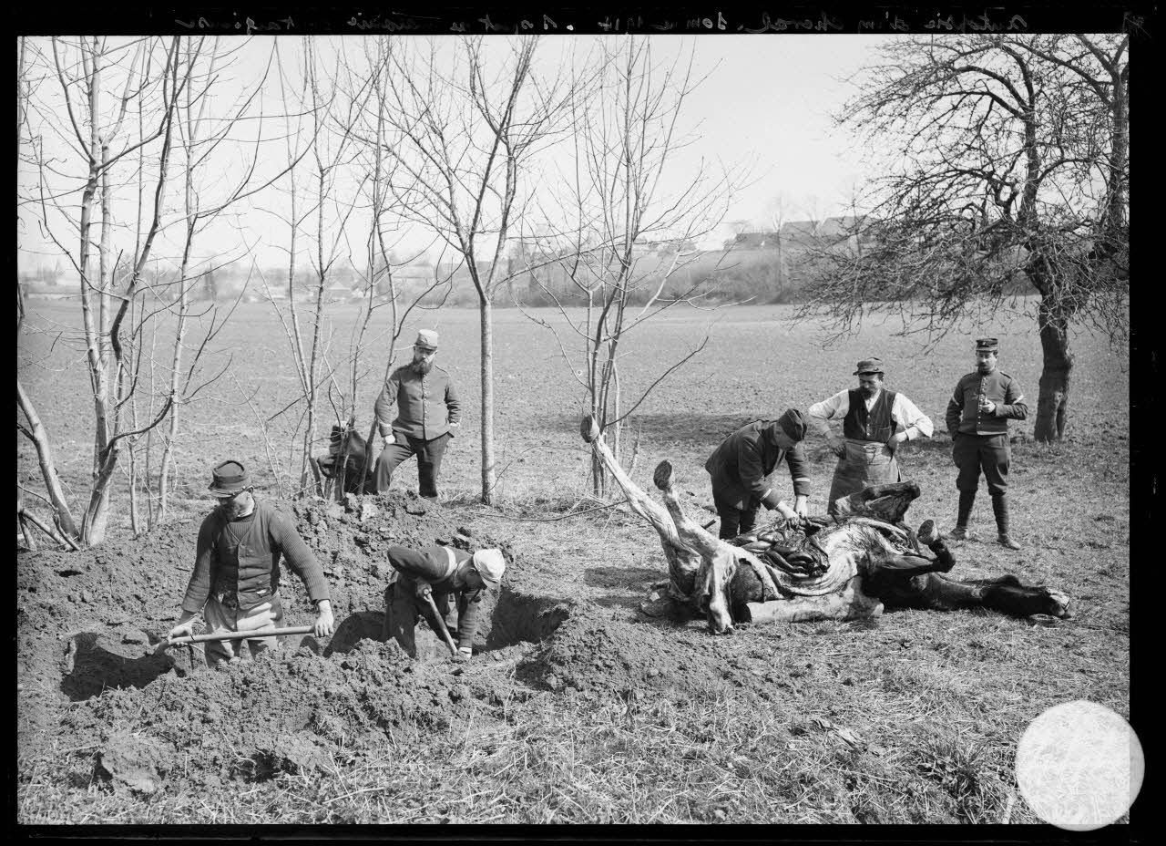 Autopsie d'un cheval, Somme 1914, suspect de maladie contagieuse. [légende d'origine]