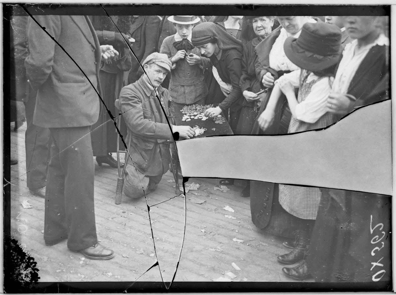 Aux Champs Elysées. Vente de décorations par un mutilé.