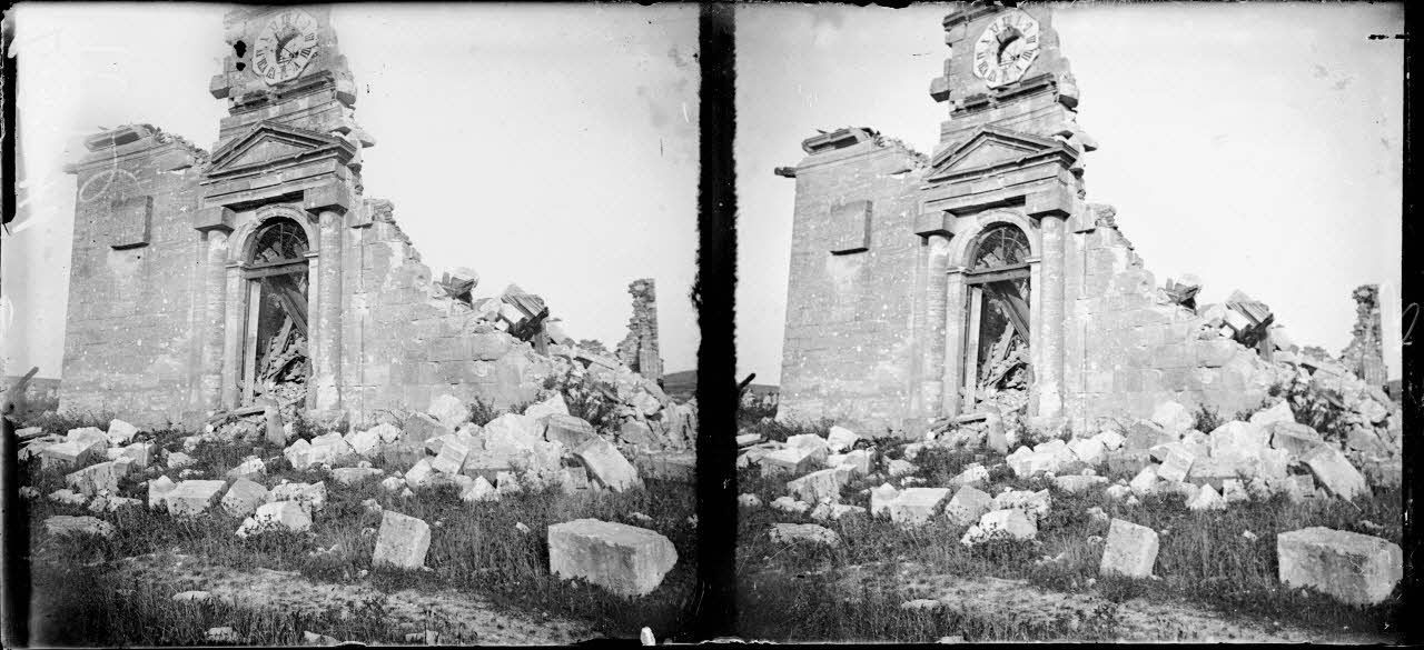 - à Louvemont, un infirmier militaire au milieu des ruines du village, SPA 61 L 3056/3060) ;