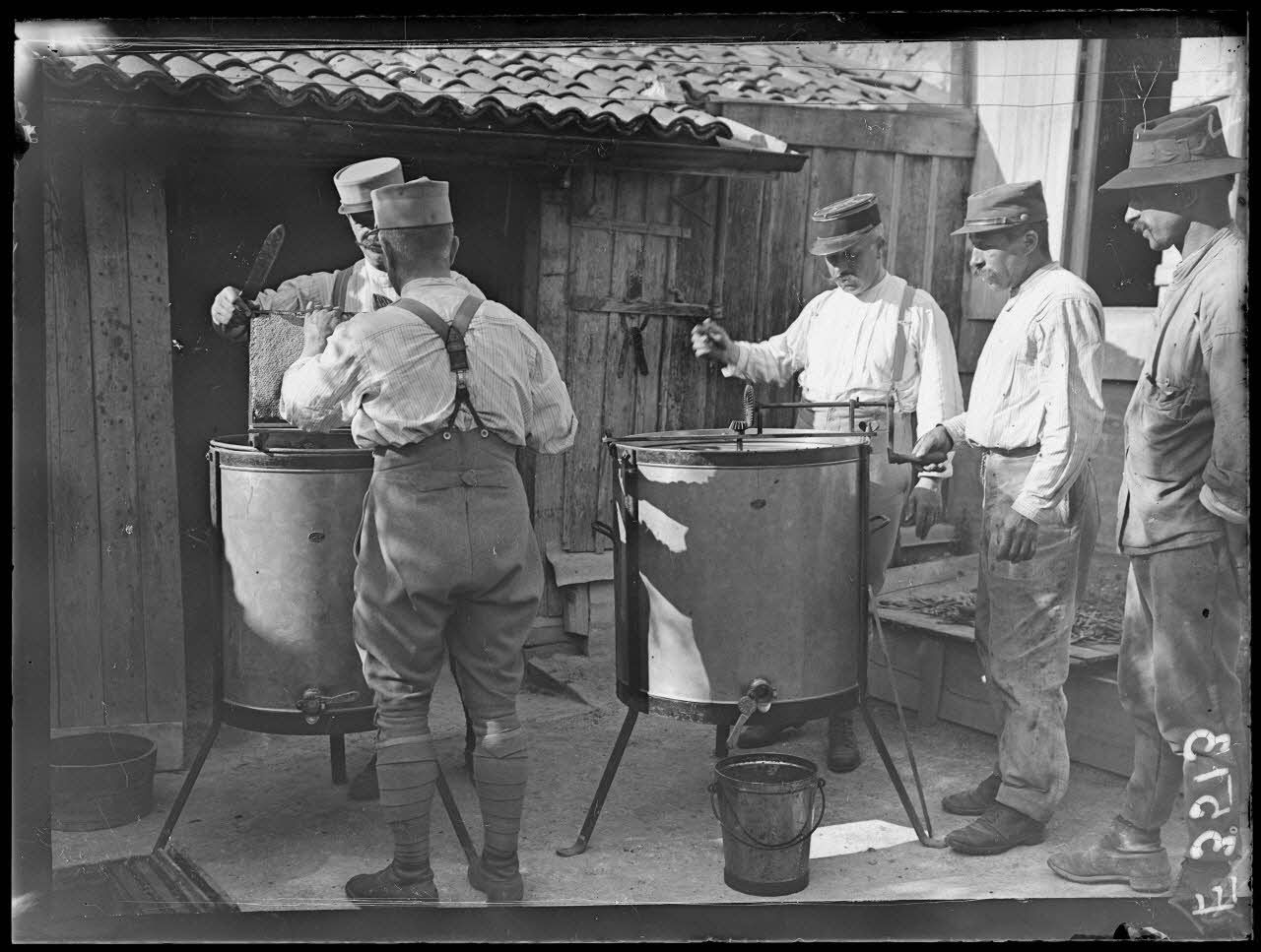 Aux Petites Loges. Marne. Les paysans étant évacués, l'autorité militaire fait procéder à la récolte du miel.