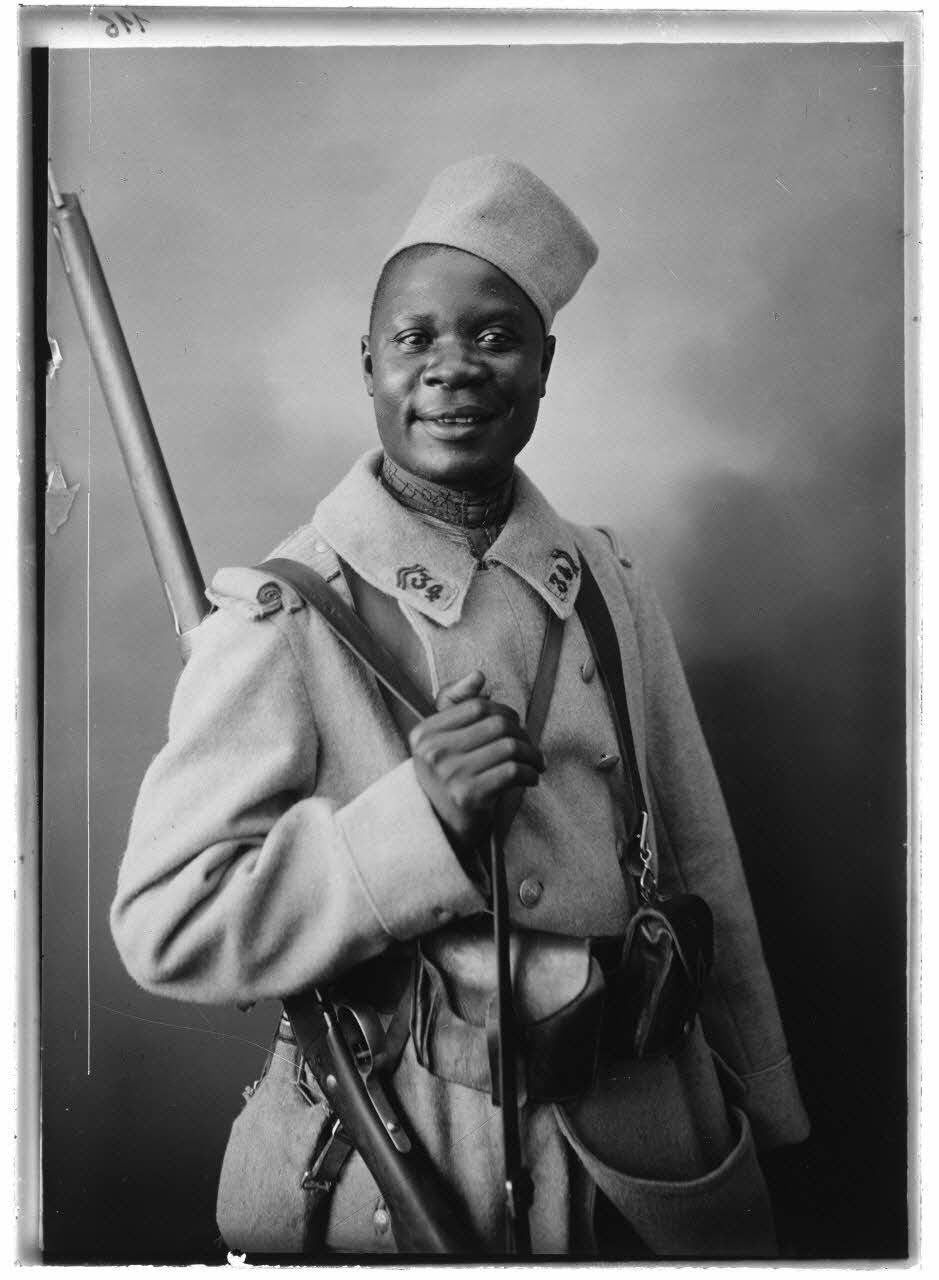 [Auxiliaire d'une ancienne colonie française de face dans un décor de studio.]