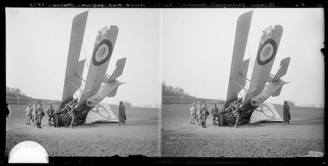Avion français amoché tombé dans nos lignes, Aisne, 1918. [légende d'origine]