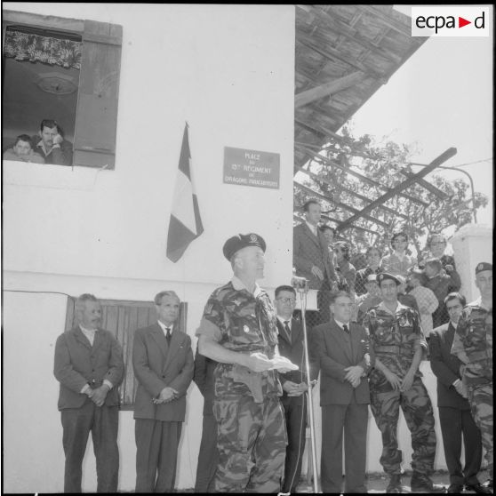 Azazga. Le colonel Pottier fait son allocution au sujet de la nouvelle plaque de la place d'Azazga.