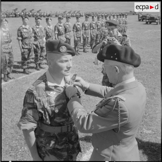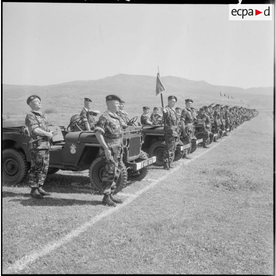Les troupes étaient alignées sur le terrain d'aviation, elles étaient présentées par le colonel Pottier, commandant le 13e régiment de dragons parachutistes (RDP).